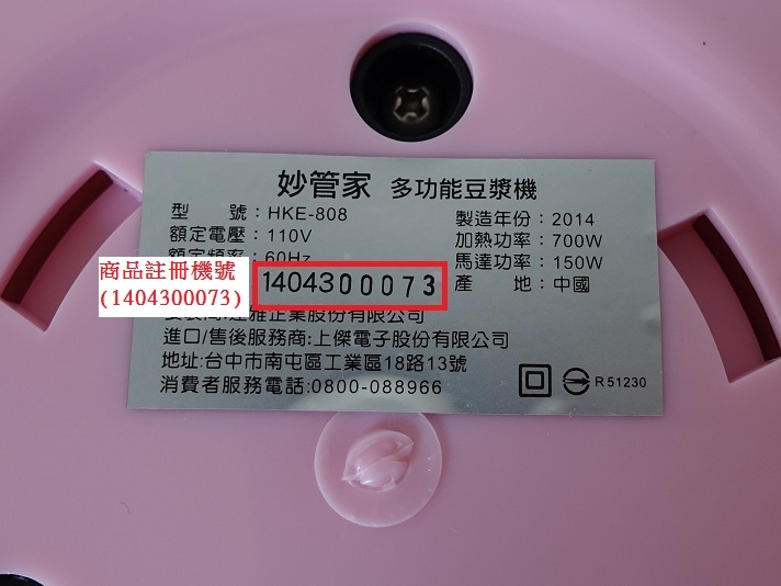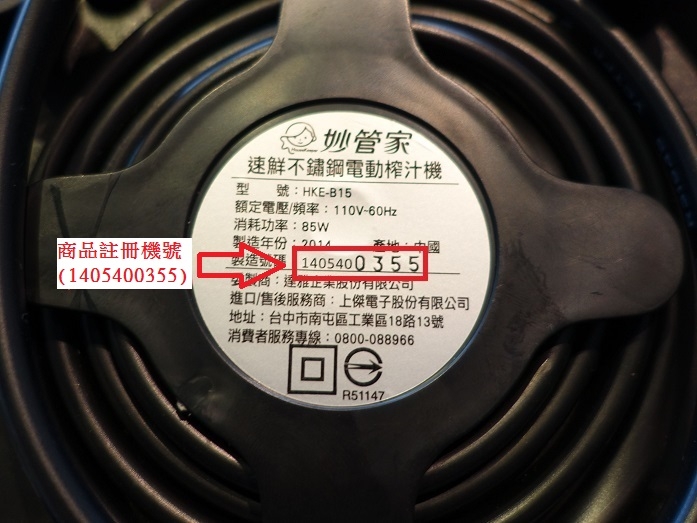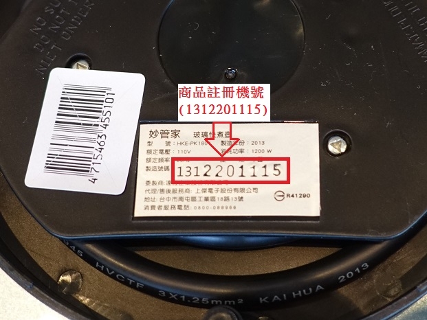 商品註冊機號位在商品底部之標籤